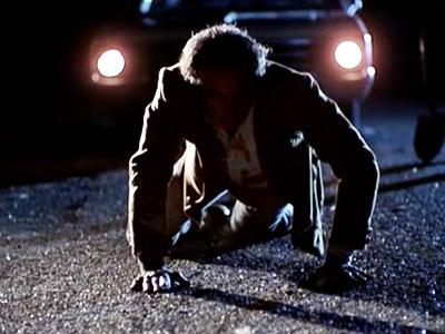 Of course what’s even more surprising is his realization that Marty is in fact not dead. As he crawls out of Ray’s car and onto the street Ray now finds himself in a complicated scenario. To kill or not to kill, that is the question. With a big rig on the way down the highway, the climax is suspended, if only for a moment, as Ray is forced to help Marty back into the car.