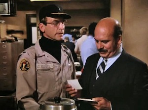 Many episodes wrapped up with Captain Frank Furillo (Daniel Travanti) and public defender Joyce Davenport (Veronica Hamel) alone together in a domestic scene, often in bed, discussing how their days have gone. Their conversations were not always happy, and sometimes they could be very downbeat or bitter. But they could be quite funny too; the show's writers were not above indulging their love of language and puns.