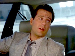One of the many things that made Moonlighting different from other shows was its excursions into fantasy; in season two, it aired "The Dream Sequence Always Rings Twice," an episode that featured two prolonged and elaborate black-and-white dream sequences. The episode was about a 1940s-era murder that David and Maddie are told of by the inheritor of the nightclub where it happened. Maddie and David feud over the details of the crime, which involved a man and woman who were executed for the death of the woman's husband, with both claiming the other was the real killer. After a fourteen-minute set-up, the episode takes us through two black-and-white dream sequences where Maddie and David each separately dream their version of how the murder happened. Glenn Gordon Caron filmed them on black-and-white film stock so they'd resemble true period films (in the DVD commentary, it's further said that black-and-white film was used instead of color so that the network couldn't later use the color version in future broadcasts).